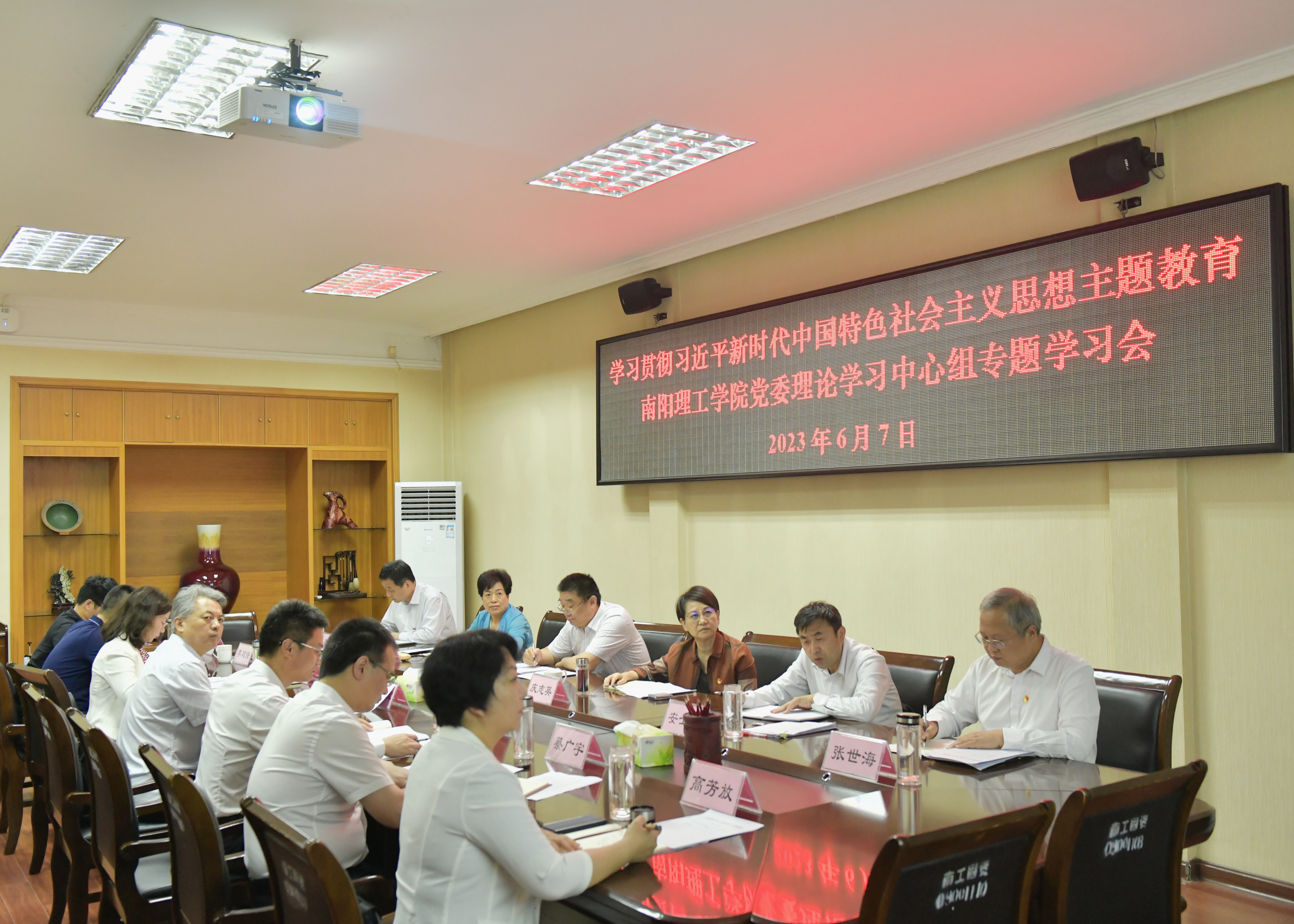 本网讯(记者/王小婉)6月7日下午,校党委理论学习中心组在第一会议室开展学习贯彻习近平新时代中国特色社会主义思想主题教育第三次专题集中学习,省委第二十七巡回指导组闫纪建、庆志英一行四人到会指导,校党委理论学习中心组成员参加学习,会议由校党委书记刘荣英主持。