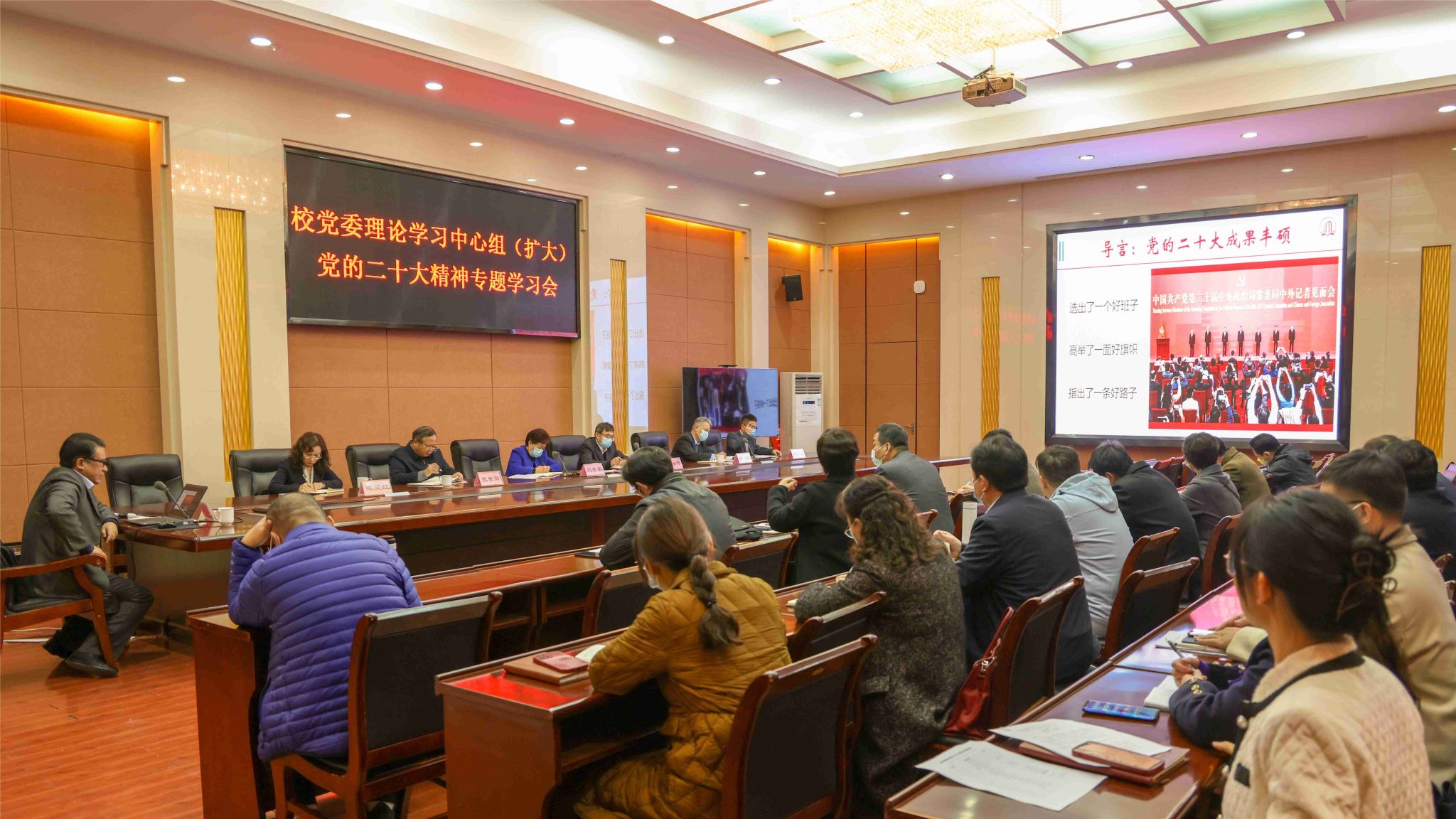 本网讯(记者/王小婉)11月23日上午,学校召开党委理论学习中心组(扩大)学习会暨党的二十大精神校级宣讲团专题培训会。校党委理论学习中心组成员和各直属党组织书记参加,会议由校党委书记刘荣英主持。