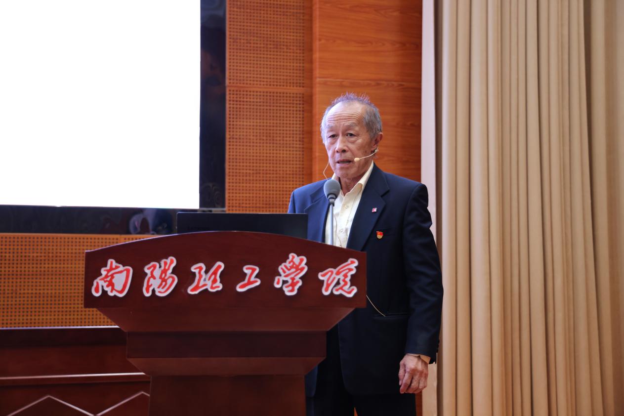 本网讯(记者/肖邓华)11月8日下午,南阳理工学院第三报告厅内座无虚席,一场以纪念中国第一颗原子弹爆炸成功60周年,中国共产党人精神谱系“两弹一星”精神与科学家精神为主题的宣讲会在此隆重举行。此次活动特别邀请了“两弹一星”元勋,中国科学院、中国工程院两院院士朱光亚之子朱明远研究员来校作报告,为师生们带来了一场精神盛宴。