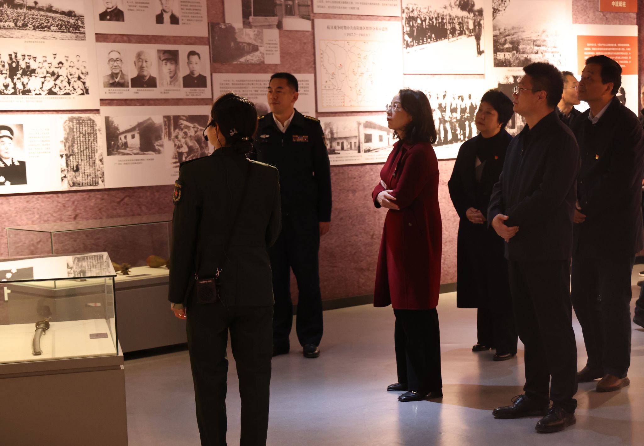 在南阳革命军事馆内,中心组一行依次参观学习“红色历程”“动员伟力”“将星闪耀”“史话丰碑”等主题展区,深入了解南阳地区军民并肩作战、艰苦奋斗、建设发展的红色底蕴与军事传承。通过一件件珍贵文物、一幅幅历史影像和详实生动的讲解,大家深刻感受到在中国共产党坚强领导下,人民军队为民族解放、国家建设作出的不可磨灭贡献,以及“听党指挥、能打胜仗、作风优良”的强军信念和实践力量。