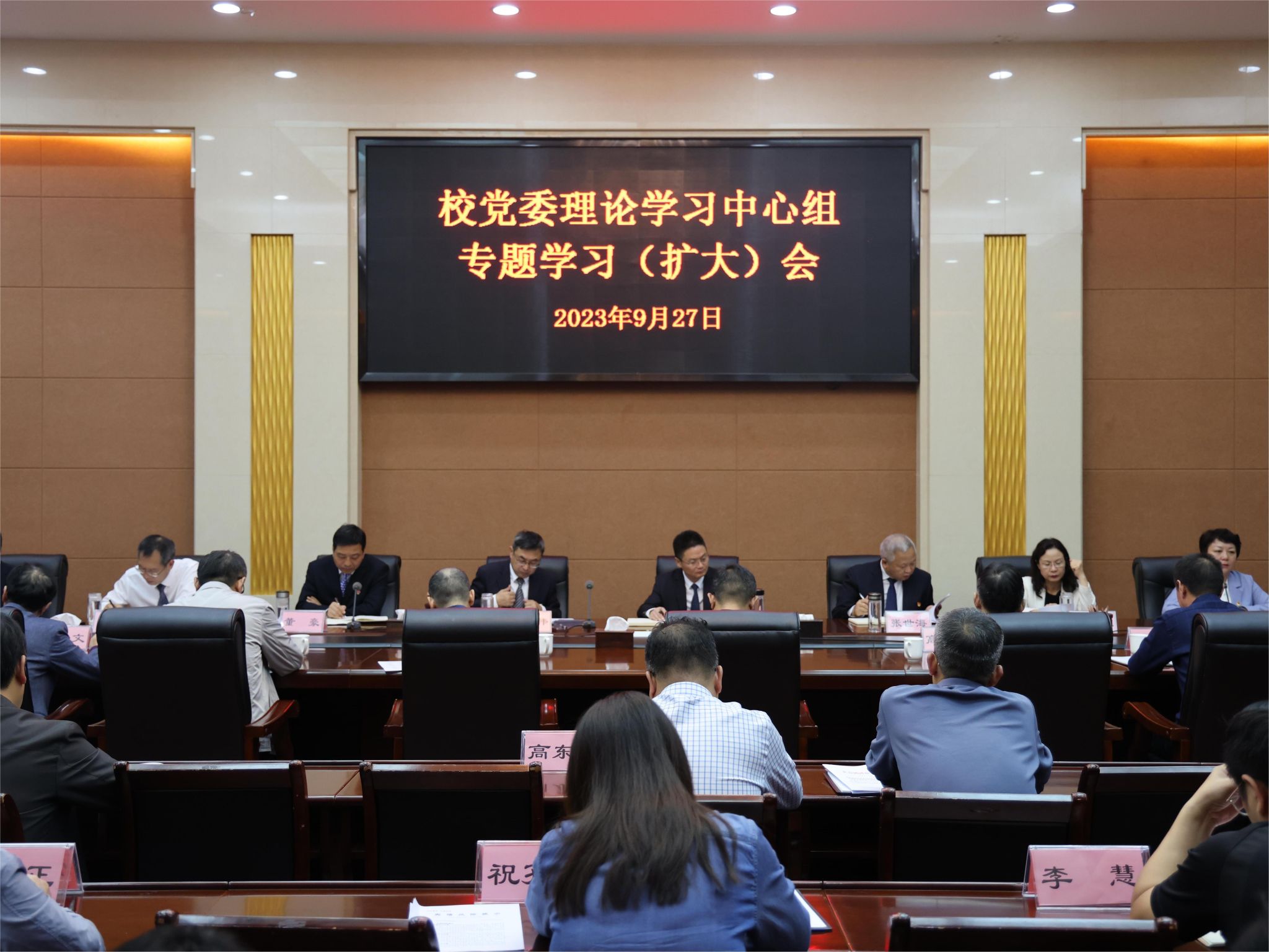 本网讯(记者/王小婉)9月27日下午,校党委理论学习中心组在会议中心开展专题学习(扩大)会,校党委理论学习中心组成员、主要职能部门负责同志和各直属党组织书记参加,会议由校党委书记安士伟主持。