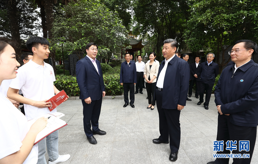 5月14日上午,中共中央总书记、国家主席、中央军委主席习近平在河南省南阳市主持召开推进南水北调后续工程高质量发展座谈会并发表重要讲话。这是座谈会前,习近平于12日在南阳市考察东汉医学家张仲景的墓祠纪念地医圣祠时,同正在参观的学生亲切交流。新华社记者 鞠鹏 摄