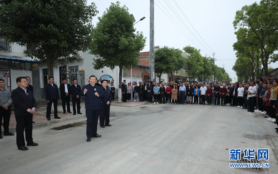 5月14日上午,中共中央总书记、国家主席、中央军委主席习近平在河南省南阳市主持召开推进南水北调后续工程高质量发展座谈会并发表重要讲话。这是座谈会前,习近平于13日在南阳市淅川县九重镇邹庄村考察时,同因工程建设搬迁到这里的村民们亲切交流。新华社记者 王晔 摄