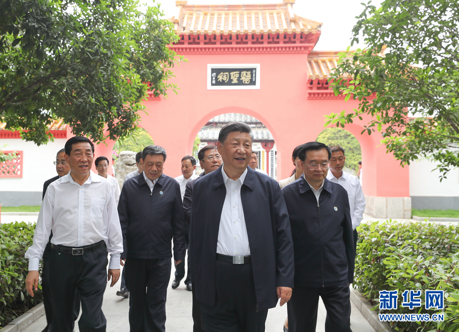 12日,习近平还在南阳市就经济社会发展进行了调研。他首先来到东汉医学家张仲景的墓祠纪念地医圣祠,了解张仲景生平和对中医药发展的贡献,了解中医药在防治新冠肺炎疫情中发挥的作用,以及中医药传承创新情况。他强调,中医药学包含着中华民族几千年的健康养生理念及其实践经验,是中华民族的伟大创造和中国古代科学的瑰宝。要做好守正创新、传承发展工作,积极推进中医药科研和创新,注重用现代科学解读中医药学原理,推动传统中医药和现代科学相结合、相促进,推动中西医药相互补充、协调发展,为人民群众提供更加优质的健康服务。